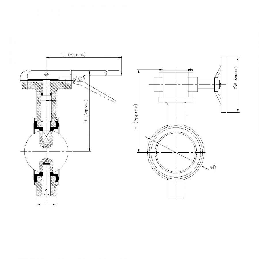 | Nominal Size | Nominal Size (Inches) | F | ∅D | LL (Approx.) | H (Approx.) |