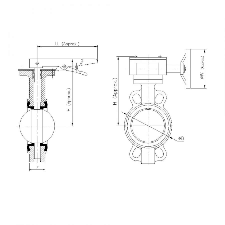 | Nominal Size | Nominal Size (Inches) | F | ØD | H (Approx.) | LL (Approx.) | ∅W (Approx.) |