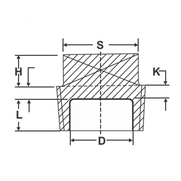 | Nominal Size of Outlet | Minimum Length of Thread for Basic gauge (L) | Approx Size of Square (S) | Approx Height of Square (H) | Maximum Internal Diameter (D) |