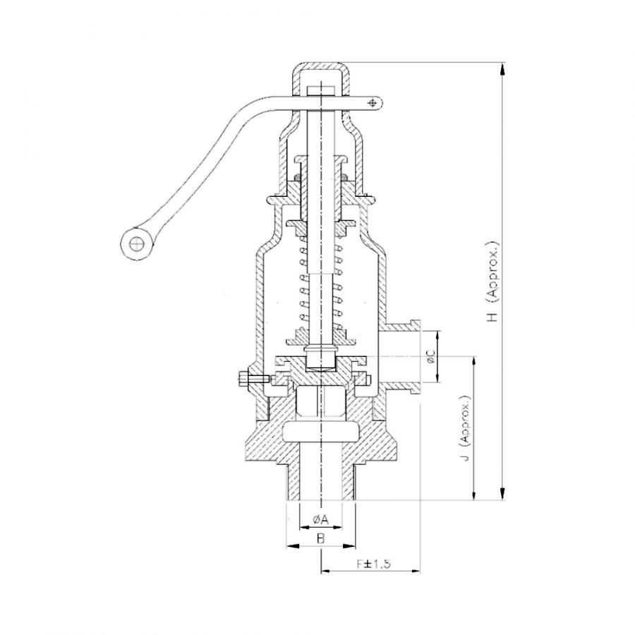 | Nominal Size | Nominal Size (Inches) | ∅A (Inches) | B (Inches) | ∅C (Inches) | H (Approx.) | J (Approx.) | F±1.5 |