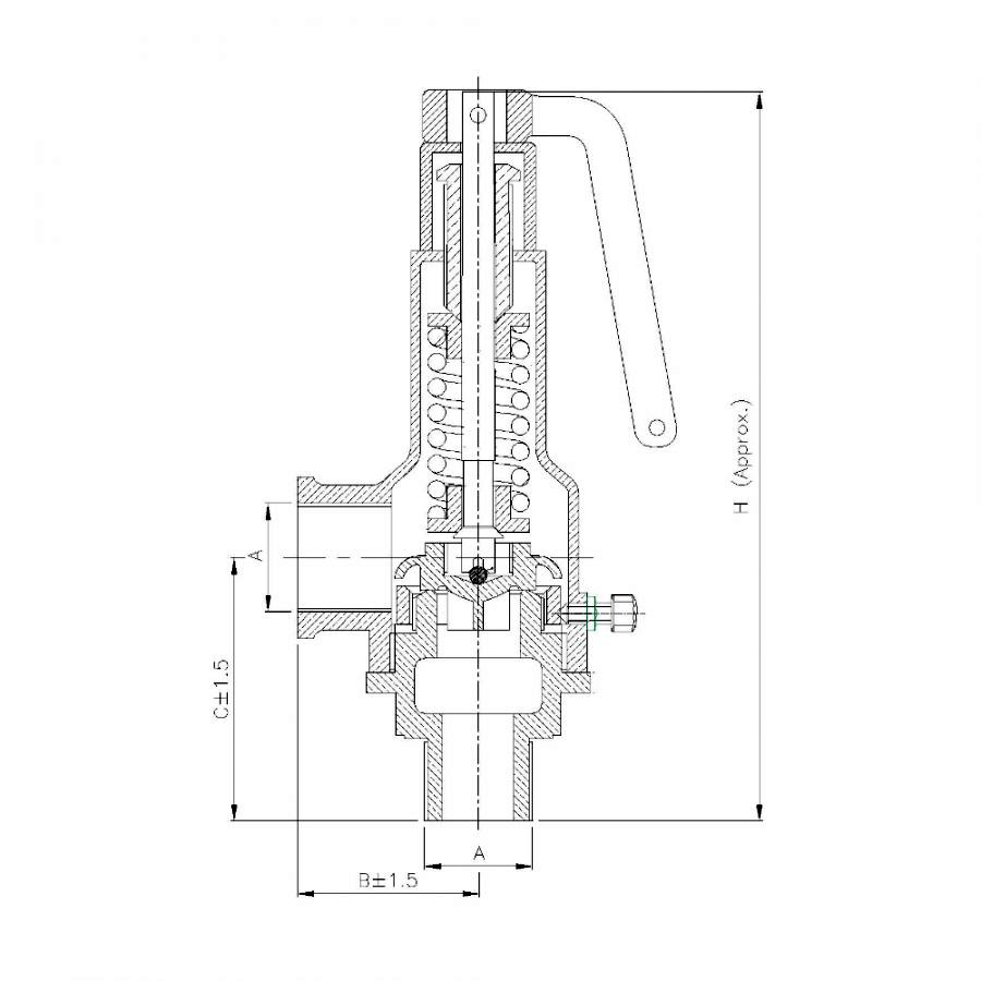 | Nominal Size | Size (Inches) | A (Inches) | B | C | H |