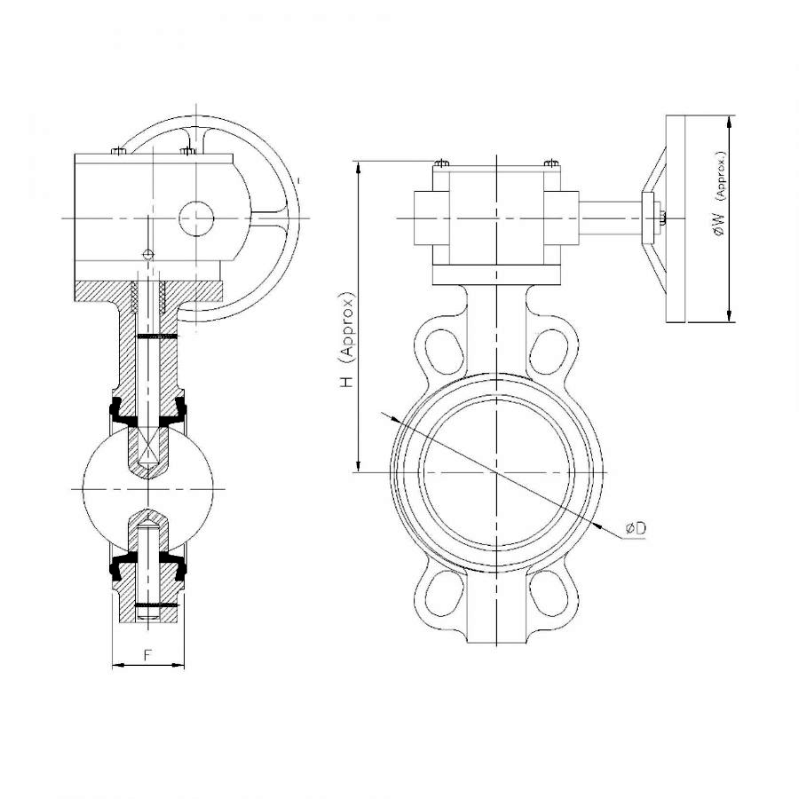 | Nominal Size | Nominal Size (Inches) | F | ∅D | H (Approx.) | ∅W (Approx.) |