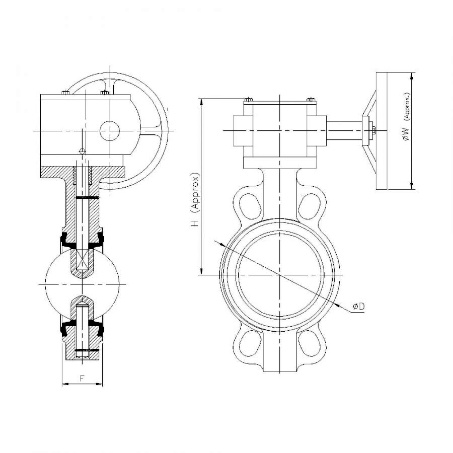 | Nominal Size | Nominal Size (Inches) | F | ∅D | H (Approx.) | ∅W (Approx.) |