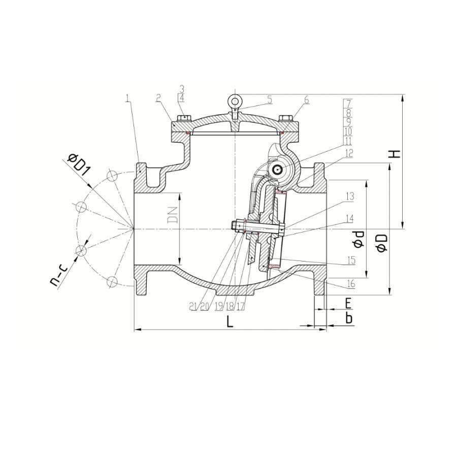 | Inch | mm | L | D | D1 | d | b | E | H | n-∅d |